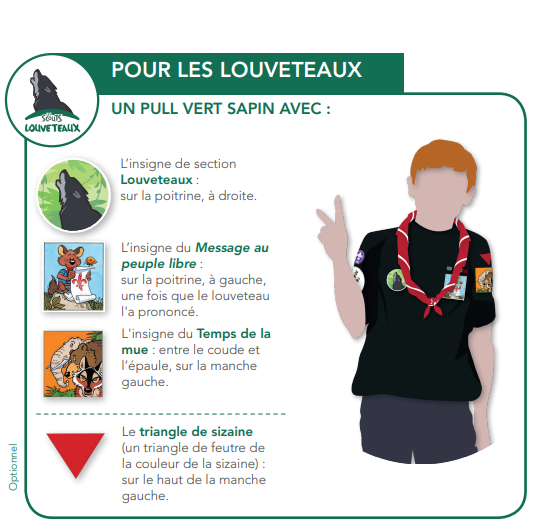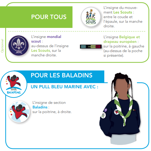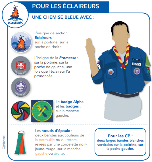 Ce document bien fait de la fédération reprend l’uniforme complet pour chaque section. Les scouts – Uniforme. Le résumé est juste en dessous.